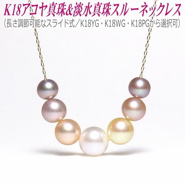 アコヤ真珠 淡水真珠 スルーネックレス K18 Yg Wg Pgより選択可 マルチカラー 7パール 長さ調節可能なスライド式チェーン Atnh 真珠専門エイチパールドットコム 通販 Yahoo ショッピング